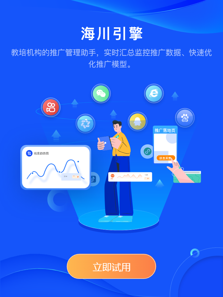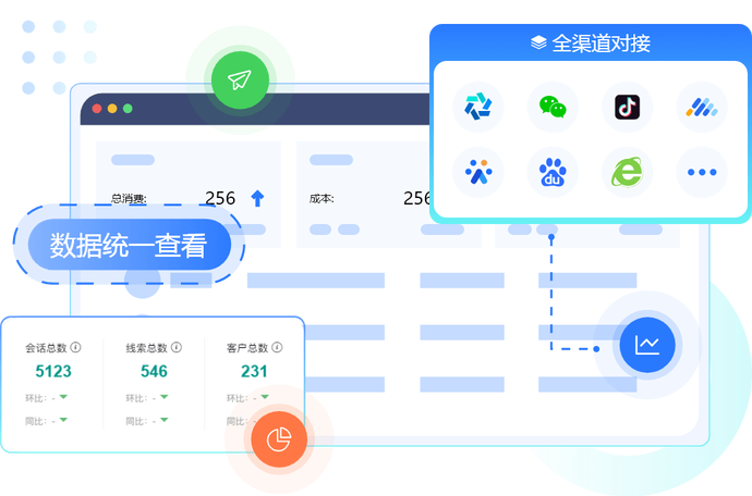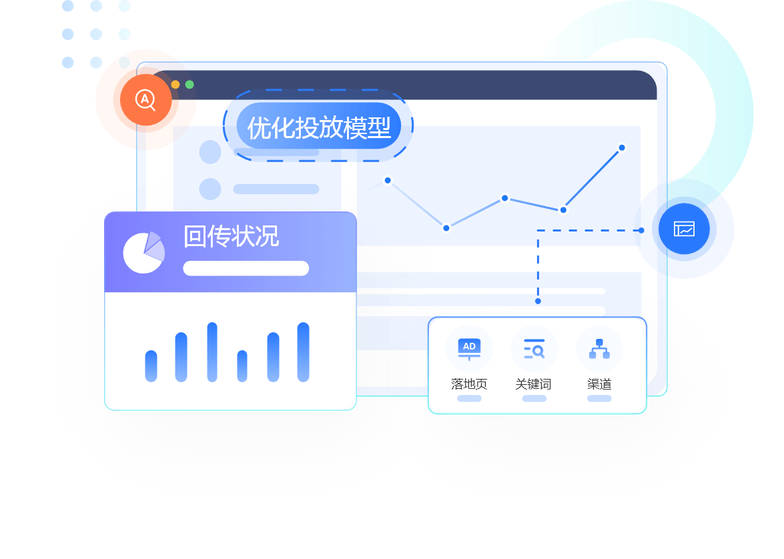 与百度、360、腾讯、巨量引擎等渠道广告商对接,整合渠道流量,推广机构统一管控,数据统一查看