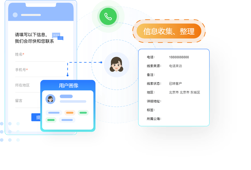 表单内容自定义,帮助教培机构套取线索;信息收集、整理,帮助企业构建用户画像,掌握用户需求,开展营销活动。